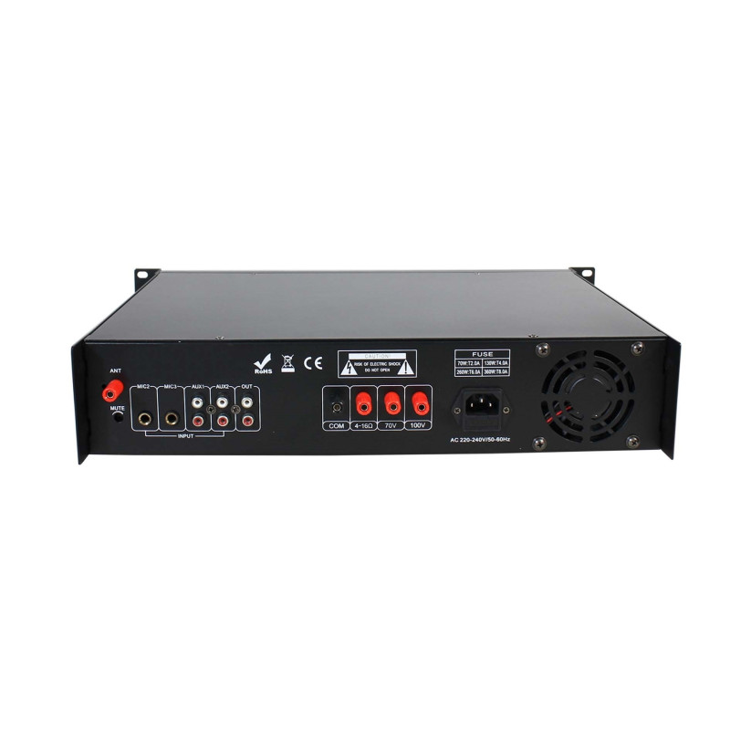 - Модель:Микшер-усилитель 260 Вт – 100/70 В / 4–16 Ом.