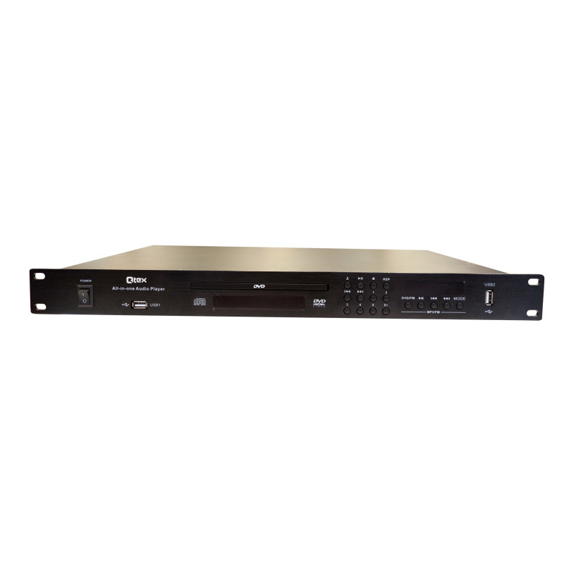 Проигрывает CD/DVD, воспроизводит контент локальных USB-носителей (имеет 2 порта USB), файлы формата MP3 и MP4, FM-радио или использует потоковую передачу цифрового контента по Bluetooth. Монтируется в 19-дюймовую стойку. Управление устройством осуществляется по ИК.