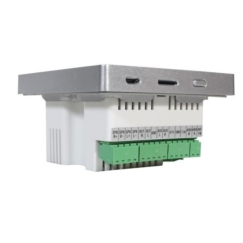Оснащена проигрывателем контента с локальных носителей (USB, SD-карт), FM-радио, Bluetooth. Есть выход на дополнительный усилитель. Управление осуществляется по RS-485. ИК пульт в комплекте.