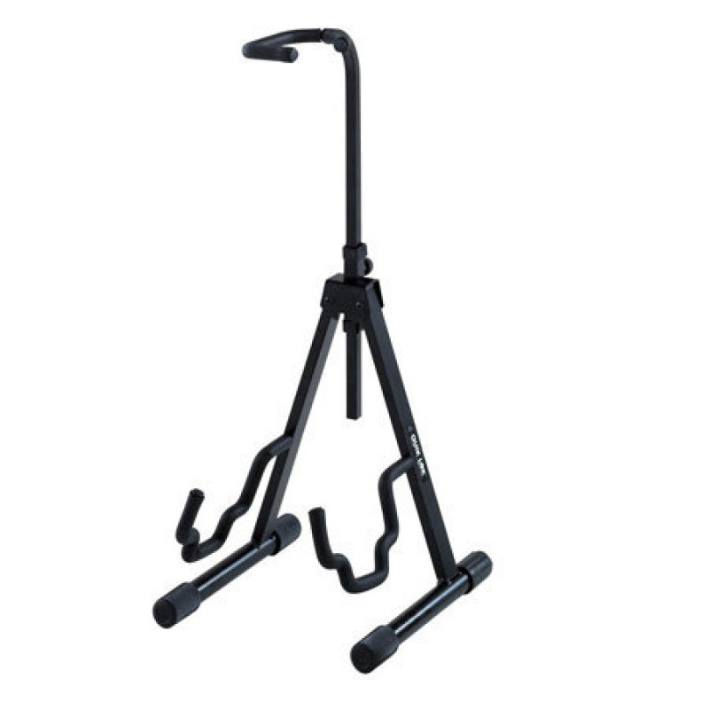 Предназначена для любого типа акустических, электрических и бас-гитар и имеет регулируемый по высоте (от 50 см до 82 см) опорный держатель грифа. Подставка оснащена резиновым покрытием контактных частей. Собственный вес конструкции не превышает 2 кг. Предлагаемые цвета - черный и серо-металлический.