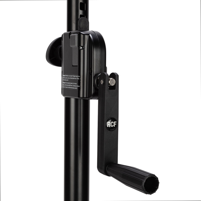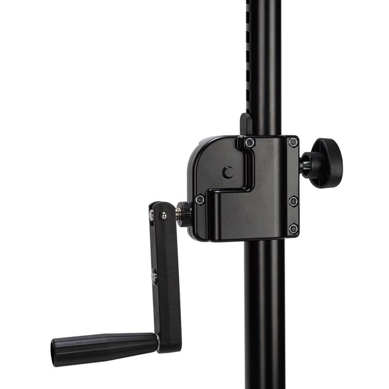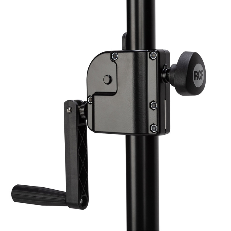 - Имеет ручной механизм для плавной регулировки высоты подъёма громкоговорителя.