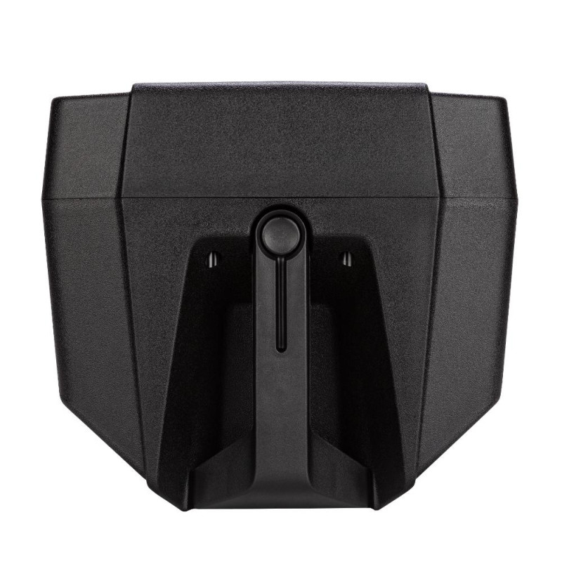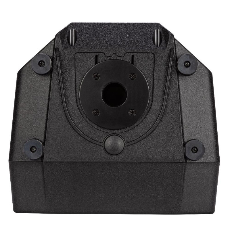 Для подключения источника аудиосигнала в наличии имеется балансный вход, выполненный на разъеме XLR, а также вход на разъеме 1/4'' Jack TRS, позволяющий подключать балансные или небалансные сигналы. Вывести звук на вторую колонку или сабвуфер можно с помощью выхода на разъеме XLR. Корпус выполнен из легких композитных материалов, а НЧ-динамик защищен стальным грилем. Для вариативности размещения АС в пространстве предусмотрено две точки для навесного монтажа с резьбой M10, а также стакан 35 мм, служащий для установки на стойку. Задняя панель устройства также оборудована регулятором громкости и цветной индикацией, сообщающей о статусе работы и о наличии клиппинга. Для комфортной транспортировки сверху корпуса предусмотрена ручка для переноски.