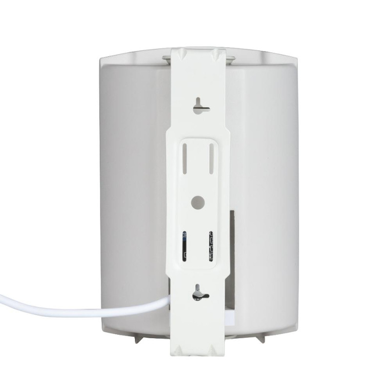 Подключения к линии громкоговорителей производятся с использованием двужильного кабеля, выходящего с задней стороны громкоговорителя. Корпус включает защитную перфорированную решетку и аксессуар для настенного монтажа. Доступен в белом и черном цвете.