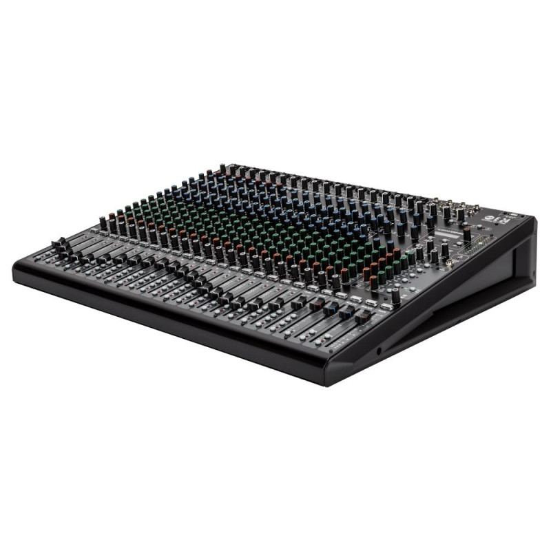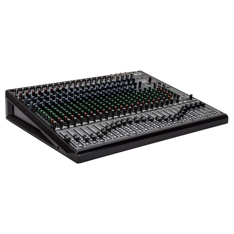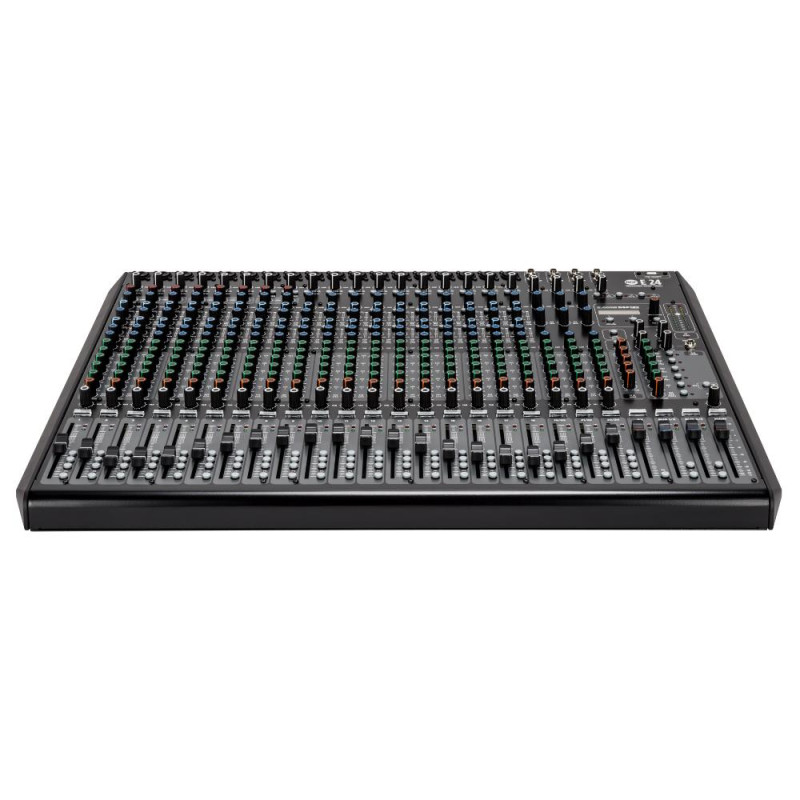 Модель имеет 18 монофонических каналов, которые оснащены микрофонными входами на разъемах XLR и линейными на разъемах 1/4” Jack TRS. Каждый из них оборудован высококлассным микрофонным предусилителем, имеющими диапазон усиления 54 дБ, и фильтром низких частот с частотой среза 80 Гц. Эквалайзеры данных каналов 4-х полосные. Их средние 2 полосы имеют переключаемую ширину и настраиваемую рабочую частоту. Первые 8 каналов оснащены компрессорами. На микрофонные возможна подача фантомного питания 48 В. Она включается отдельно для каналов 1-6, 7-12 и 13-18 при помощи 3 соответствующих кнопок. Для каналов 9-14 предусмотрены комбинированные входы/выходы Insert, выполненные на разъемах 1/4” Jack TRS. Каналы 7 и 8 имеют режим Hi-Z. Входы стереофонических каналов 19/20-23/24 используют парные разъемы 1/4” Jack TRS. Эквалайзеры этих каналов являются 3-х полосными. Для проходящего через отдельные каналы сигнала есть возможность префейдерного прослушивания посредством наушников или мониторов контрольной комнаты. Имеется дополнительный стерео канал 2TRK, вход которого выполнен на 2 разъемах RCA. Он предназначается для вывода на пульт сигнала с различных бытовых устройств. Элементы управления этого канала ограничиваются ручкой регулировки громкости.