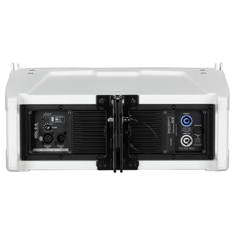 HDL 6-A W выполнен в прочном, усиленном изнутри корпусе из композитного полипропилена и оснащён парой алюминиевых ручек, облегчающих процесс переноски акустической системы. На задней стороне кабинета имеется специальная скоба, которая позволяет придать нужную форму линейному массиву ещё на земле, до подъёма его на высоту.