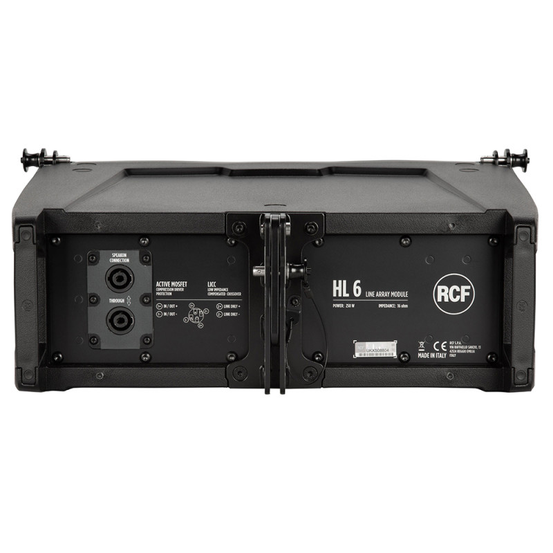 HL 6 — это двухполосная система, подходящая в тех случаях, когда требуется дальность заброса звука и равномерность покрытия линейного массива в компактном форм-факторе. HL 6 отличает удобная система монтажа и простая настройка, что позволяет пользователю при необходимости очень быстро развернуть систему звукоусиления. HL 6 оснащена современными излучателями RCF: двумя мощными 6,0" вуферами для солидного низа и мощным 1,75" компрессионным драйвером, нагруженным на волновод 100° x 10°, который чисто воспроизводит голосовой диапазон. Благодаря симметричной конструкции HL 6 обеспечивает равномерное покрытие без провалов. Корпус новинки сделан из композита на основе полипропилена и усилен деревянными несущими. Сзади имеется две ручки для переноски кабинета.