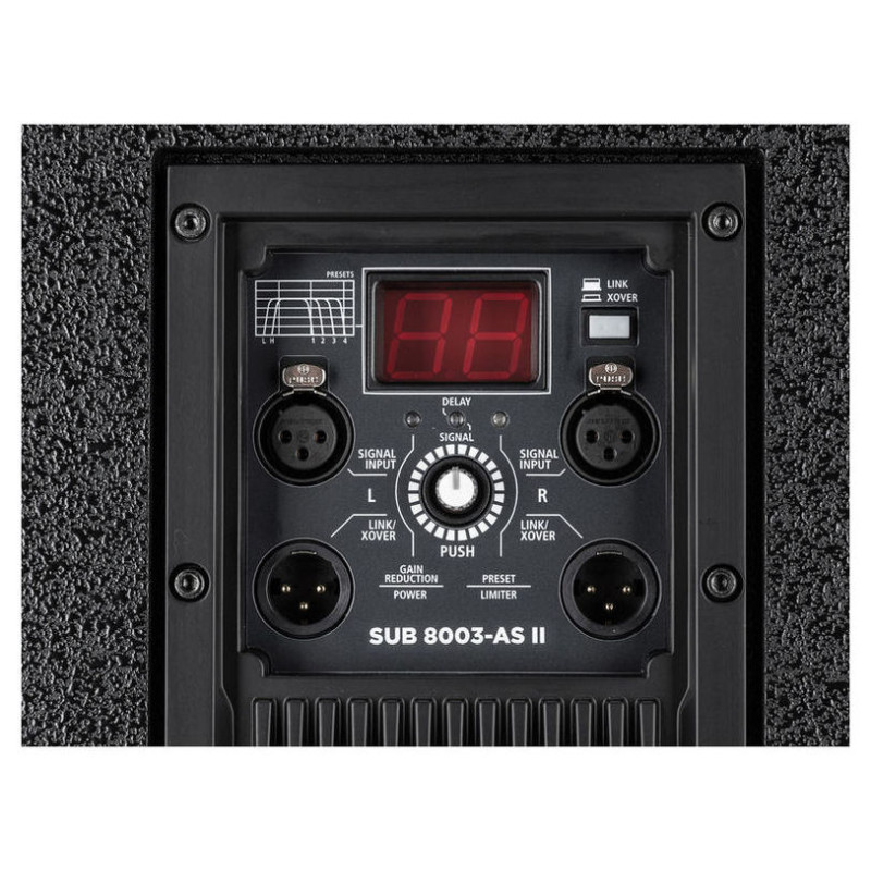 RCF SUB 8003-AS II Активный сабвуфер, усилитель D-класса 1100 Вт, 135 дБ, 35 Гц - 120 Гц, динамик 18"(4" v.c.), линейный стерео вход: 2 х XLR, встроенный DSP с пресетами, стерео выход или стерео выход кроссовера для сателлитов: 2 х XLR, деревянный корпус, 694 х 523 х 700 мм, 43,5 кг, возможность установки штатива для сателлита.