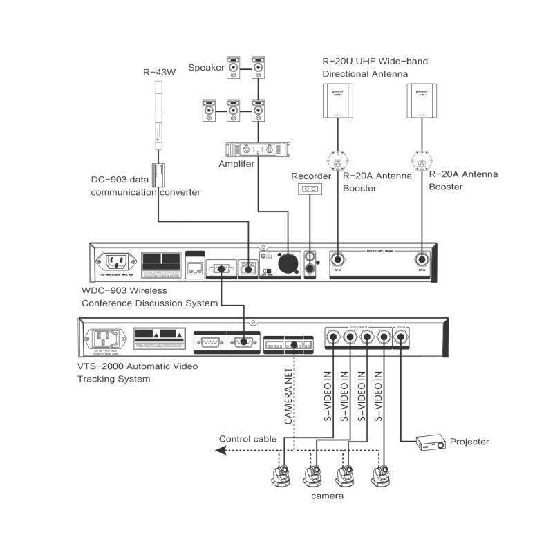 Relacart WDC-903M - Беспроводной центральный блок управления с поддержкой Dante и автоматической системы видеонаблюдения VTS-2000, предназначенный для подключения 255 беспроводных пультов с возможностью одновременной связи между 5-ю любыми пультами.