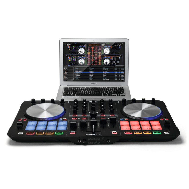 Reloop Beatmix 4 MKII профессиональный четырехканальный диджейский контроллер. Данная модель была представлена на Musikmesse 2016, предназначенная для использования с программным обеспечением Serato DJ. Обновленная версия контроллера выполнена полностью в черном цвете корпуса. Данная модель обладает 16-ю прорезиненными драм-пэдами с разноцветной подсветкой для управления семплами и cue-точками, 4-канальный микшер, оптимизированный для клубного использования, а также плоские сенсорные джоги размером 14,4 см, а также LED-подсветкой для отображения позиции виртуальной "иглы". Над джогами располагается секция управления эффектами, а на задней панели расположены выход звукового USB-интерфейса с двумя выходами на наушники, микрофонным входом и мастер-выходами RCA. Поставляется в комплекте с Serato DJ Intro.
