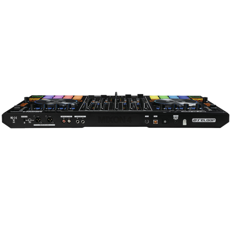 Reloop Mixon 4 DJ-контроллер.Разработан RELOOP в сотрудничестве с производителями диджейского ПО – компаниями Algoriddim и Serato. Модель является мультиплатформенным решением all-in-one для работы с программами Algoriddim djay Pro (iOS/Mac) и Serato DJ (Mac/ПК).Предусмотрены плоские джоги (155 мм) с сенсорной поверхностью и подсветкой LED для зрительной обратной связи (видна позиция виртуальной «игры»). Кроме того, имеется 16 больших (30x30 мм) драм-пэдов с чувствительностью к быстроте нажатия и разноцветной подсветкой. Пэды поддерживают работу в 8 performance-режимах, в том числе новом Pitch Play. Встроен режим Harmonic Mixing для синхронизации тональности разных треков нажатием кнопки.