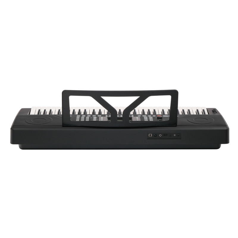 - Разъемы подключения внешних устройств: вход питания 9 В постоянного тока, вход подключения микрофона, выход подключения наушников, гнездо подключения педали сустейн, разъем USB MIDI.