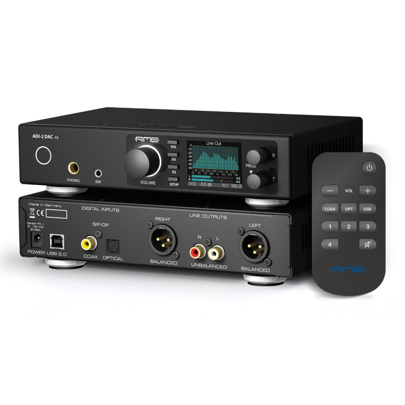 RME ADI-2 DAC цифро-аналоговый преобразователь, оснащенный интерфейсом SPDIF и усилителем под наушники. Предусмотрен IPS-дисплей, встроенная обработка DSP, совместимость с iOS-оборудованием, а также воспроизведение DSD256 и PCM 768 кГц/32 бит. Среди других особенностей – параметрический эквалайзер на 5 полос, удобная регулировка баса и высоких частот, кроссфейдер и управление уровнем громкости для аналоговых стерео выходов. Качество звука улучшено с помощью SteadyClock FS (технологии подавления джиттера) и внесенных в аналоговые цепи изменений. Есть два выхода на наушники. Один выполнен на разъеме джек, а второй – на миниджеке. Последний оптимизирован для работы с очень чувствительными внутриушными мониторами. В комплект входит адаптер питания, кабель USB и пульт ДУ. На нем находится 11 кнопок, в том числе четыре с возможностью программирования на выполнение функций. Подойдет ADI-2 DAC для домашнего либо студийного применения.