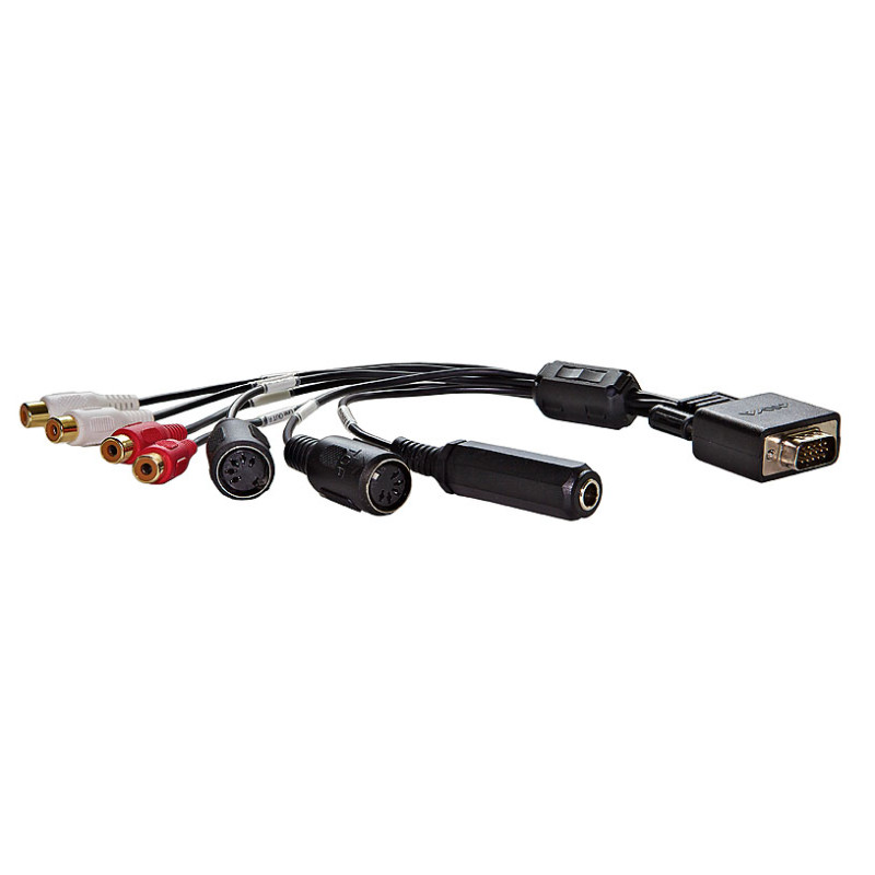 Для соединения с основной платой предназначен порт типа D-Sub с пятнадцатью контактами, расположенный на одном из концов кабеля. На другом конце кабеля смонтированы: четыре аналоговых RCA-разъема, два MIDI-порта и разъем для наушников.