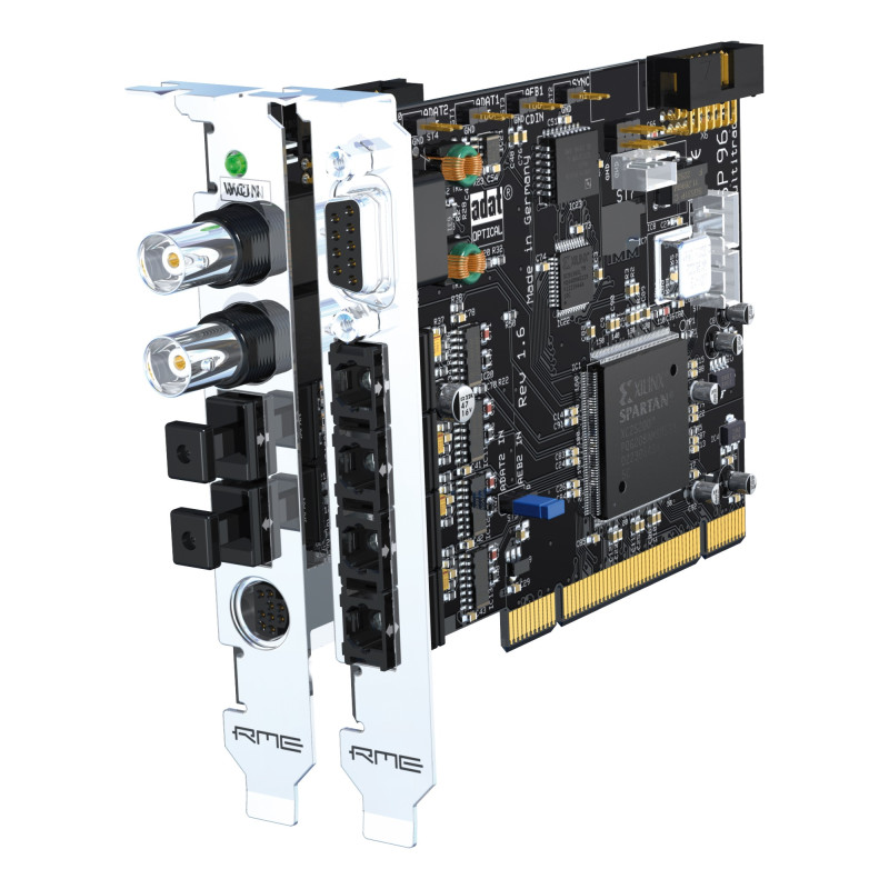 RME HDSP 9652 24-битная 54-канальная звуковая карта, оснащенная входами\выходами формата ADAT. Устройство также оснащено 2 портами MIDI\O, 1352-канальным микшером TotalMix FX и одним портом SPDIF. Микшер создает независимый процесс микширования и маршрутизации для всех каналов. Модель работает на базе драйвера RME, который обеспечивает эффективную защиту от возможных помех или искажений звукового сигнала. Плата оснащена свободно масштабируемым измерителем уровня звука HDSP Meter Bridge.MIDI, аналоговые и цифровые входы\выходы подключаются к плате при помощи разъема D-sub.