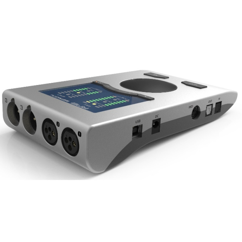 - встроенный микшер с процессором эффектов TotalMix FX (имеется 3-полосный PEQ на всех входах и выходах, также доступны эффекты реверберации и задержки);