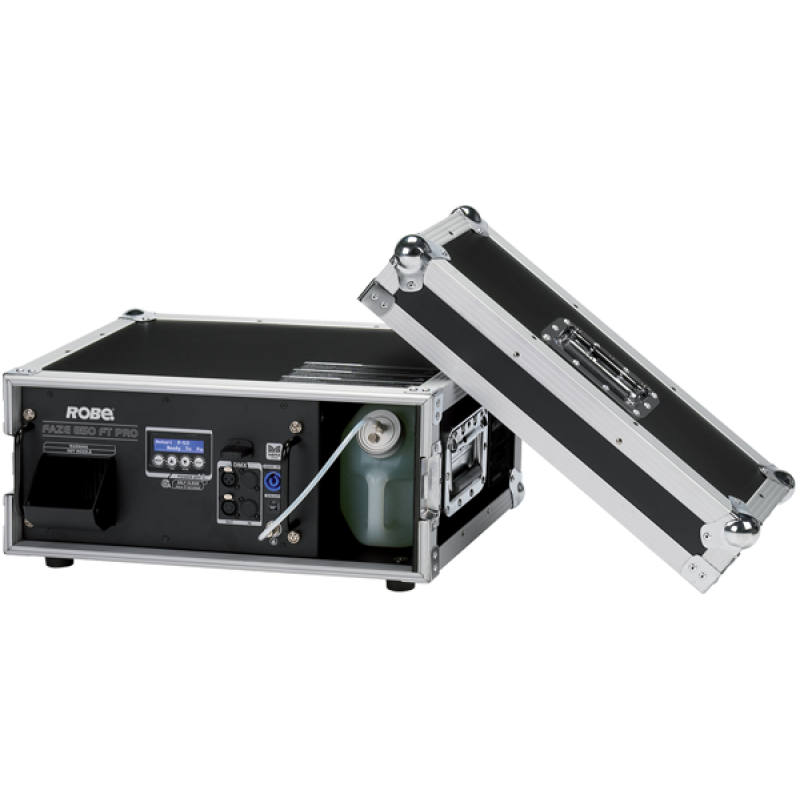Датчик уровня жидкости расположен в трубке, что способствует рациональному расходу жидкости. Большие сменные фильтры вентилятора легко доступны с внешней стороны кейса. FAZE 850 FT Pro — превосходный прибор для мероприятий, требующих высокого качества дыма, безопасного для чувствительного оборудования.
