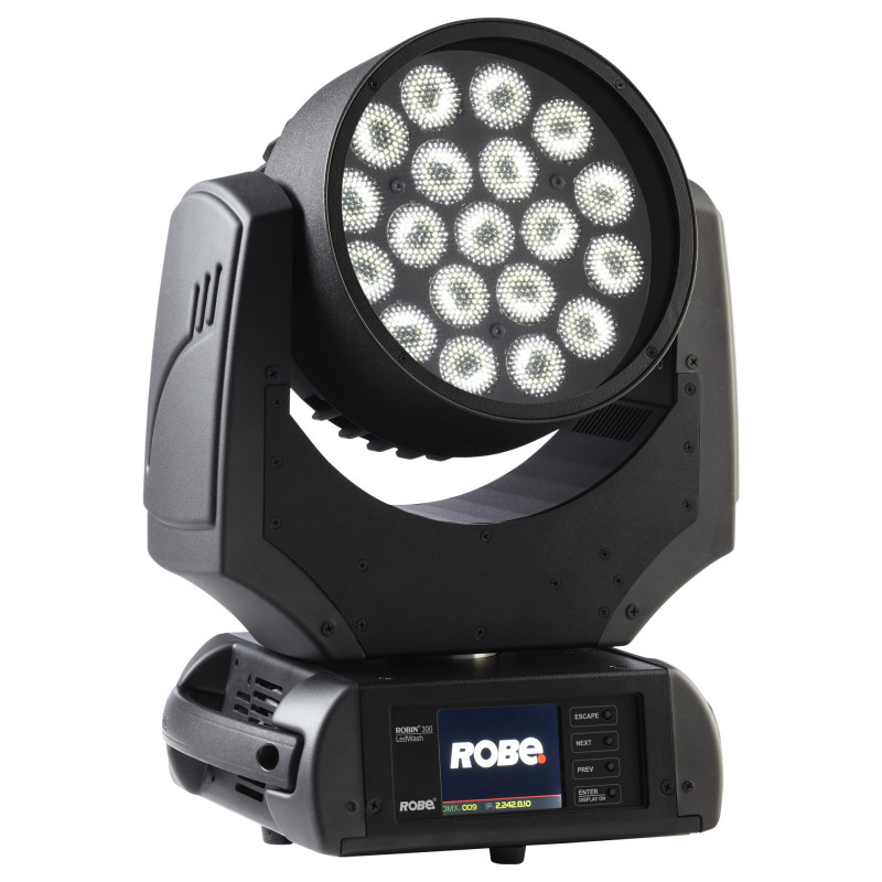 Robe LEDWash 300+ - Использующий 19 светодиодов и зум 8°- 63° , предлагает большую гибкость в работе и равномерность светового выхода. Специальная компонентная оптика из высокоэффективных элементов дает плавное динамичное смешение цветов и оттенков. Этот легкий компактный прибор идеален для небольших и средних площадок с ограниченным пространством.