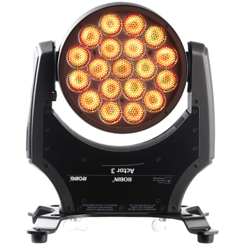 Линейка заливающих световых приборов Actor от Robe позволяет использовать технологии приборов серии LEDWash, отмеченных наградой, в фиксированных инсталяциях. Модель LEDWash 300 была преобразована инженерами для того, чтобы создать еще более маленькую статичную голову, легкую в управлении, которую можно зафиксировать вручную в нужном положении. 19 мощных 15Вт RGBW светодиодов сконцентрированы в 3 кольцах в модуле с запатентованной оптической системой Robe с моторизованным зумом, что дает возможность создавать мягкий луч с углом раскрытия от 8 до 63 градусов.