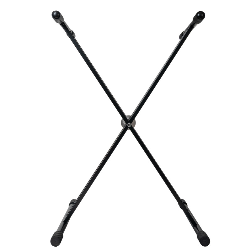 Стойка изготовлена из прочного стального профиля, рассчитана под инструменты весом до 50 кг. Конструкция складного и регулирующего элемента стойки основана на проверенном временем классическом зубчатом механизме, разработанном еще в 60е годы прошлого века. В сложенном состоянии стойка занимает всего 100 см в длину, в раскрытом состоянии ширина основания 39 см, а ширина верхней части 34 см. Вес стойки 3,5 кг. Она подойдет как для домашнего использования, так и для концертной и репетиционной деятельности. Подходит для синтезаторов и компактных цифровых пианино.
