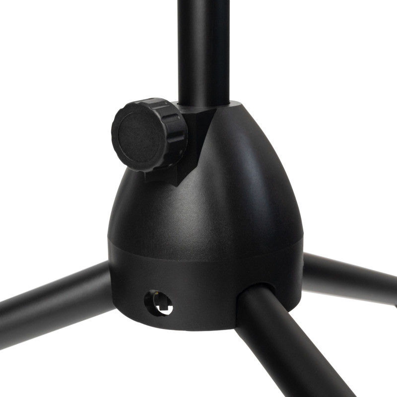 Для комфортного исполнения стойка регулируется по высоте от 90 до 152 см. Длина журавля фиксированная и составляет 66 см. В комплекте идет универсальный микрофонный держатель. Для того, чтобы во время исполнения музыканты не “путались в проводах” на стойке предусмотрены специальные фиксаторы кабеля. Основной регулируемый узел (место соединения журавля и стойки) изготовлен из надежного композитного материала. Опорная часть представляет собой классическую треногу с противоскользящими наконечниками. Благодаря простой и надежной конструкции стойку можно использовать как в домашних условиях, так и в концертной или репетиционной деятельности.