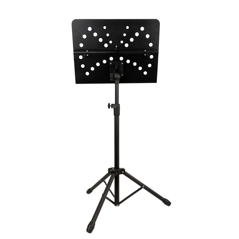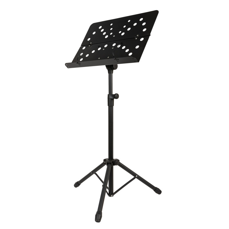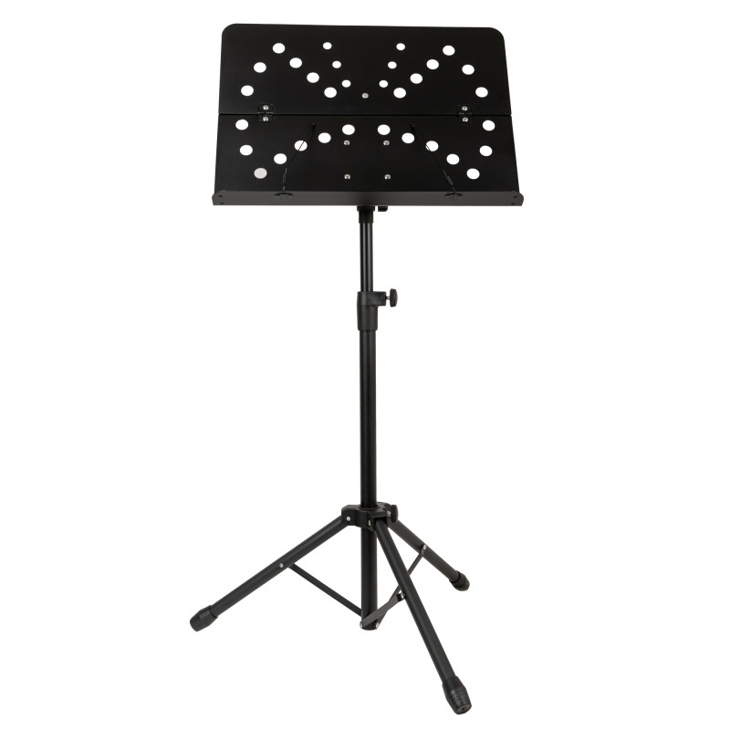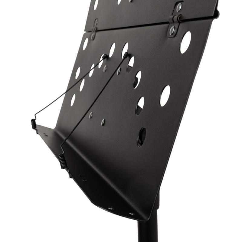 Перфорация полотна необходима не только для снижения веса пюпитра, но и позволяет получить больше естественного освещения с обратной стороны нотного листа. Помимо этого, полотно имеет возможность складываться вдвое для компактной транспортировки и хранения. Размер полотна для нот составляет 36 х 48,5 см и на нем имеются специальные зажимы для предотвращения соскальзывания.