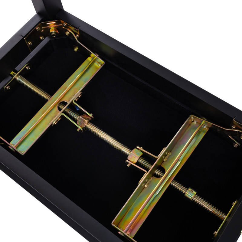 - Возможность регулировки по высоте. Высоту сиденья можно изменить от 48 до 57 см. Это позволит настроить банкетку под музыканта, что крайне важно для формирования правильной осанки и моторики при занятиях.