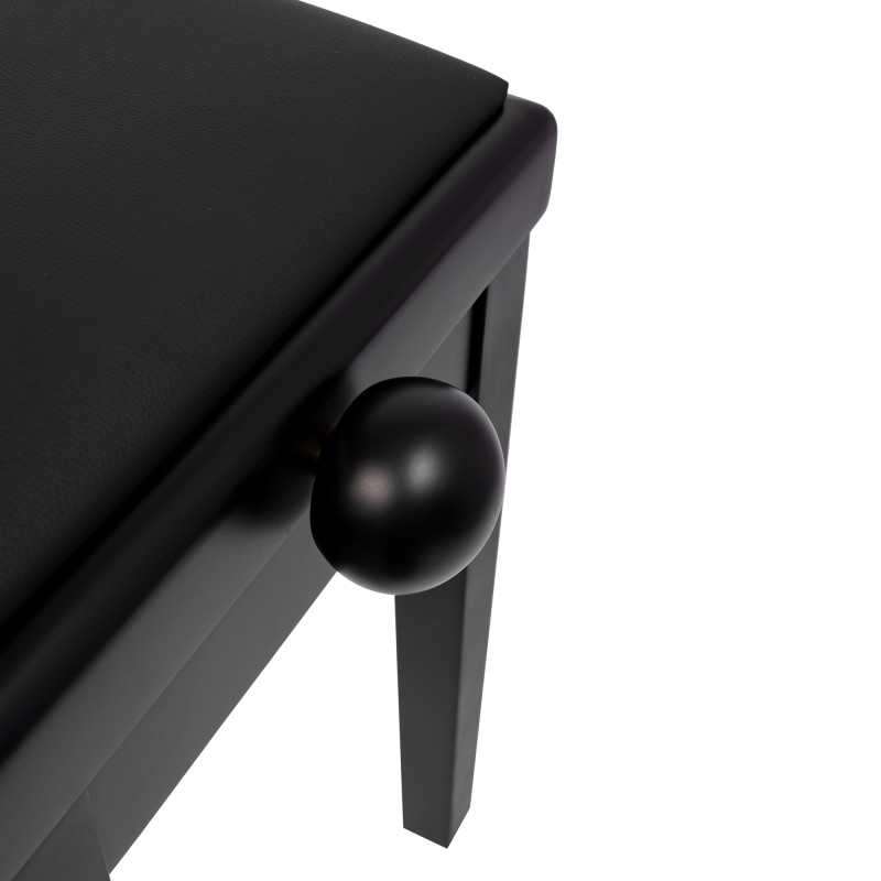 - Деревянный корпус и классическая расцветка. Корпус банкетки и сиденье выполнены в традиционном черном цвете. Банкетка легко впишется в любой интерьер и гармонично сочетается с наиболее популярной расцветкой инструментов.