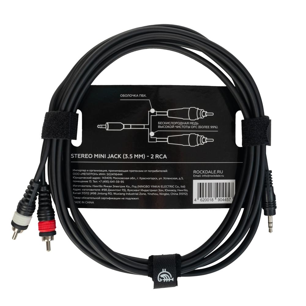 ROCKDALE XC-001-3M - компонентный кабель, разъемы stereo mini jack папа (3,5) x 2 RCA, 3м, черный, медь высокой чистоты (более 99%), оболочка ПВХ, обеспечивающая высокую гибкость и стойкость к излому.