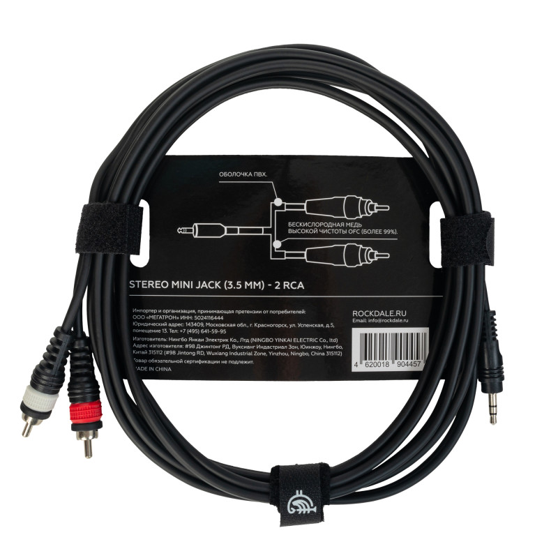 - Модель:stereo mini jack папа (3,5) x 2 RCA, 3м