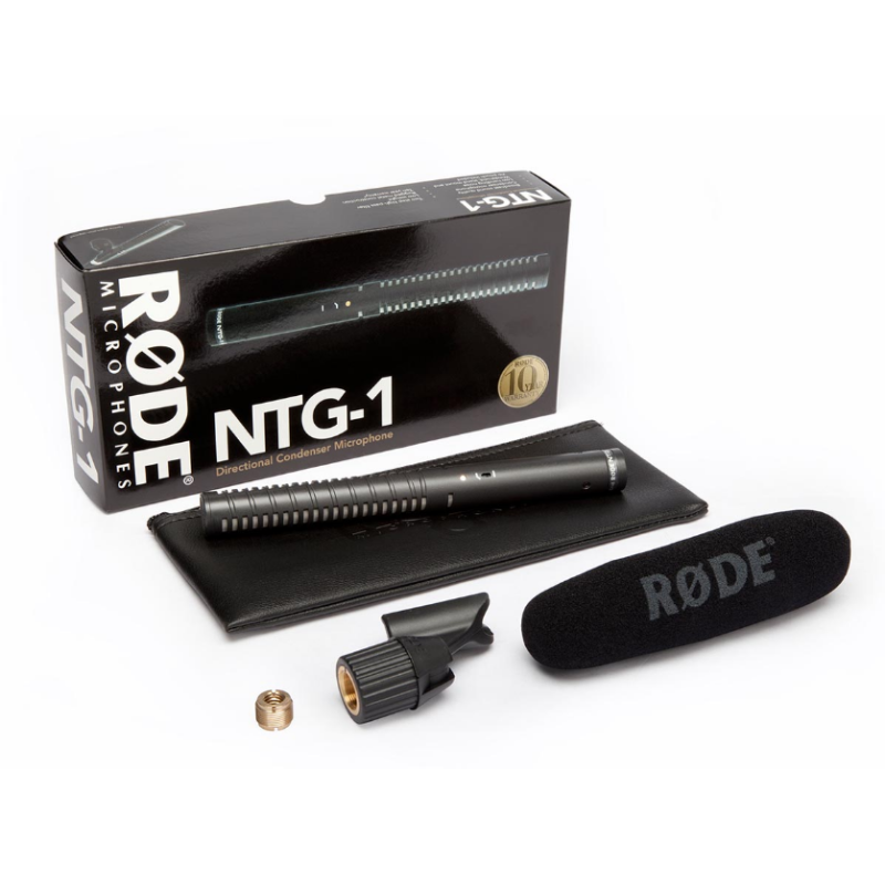 RØDE NTG-1 оснащен балансным выходом и работает от 48 В. Сочетание четкой направленности с низким уровнем собственного шума, делает RØDE NTG-1 очень удобным для использования в качестве накамерного микрофона (с помощью специального крепления).