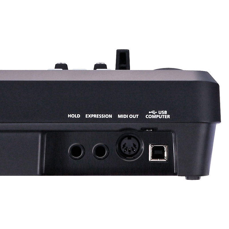 - HOLD педальный разъем: 1/4-дюйма (6,3мм) TRS коннектор EXPRESSION педальный разъем: 1/4-дюйма TRS коннектор MIDI выход, USB (USB Type B)