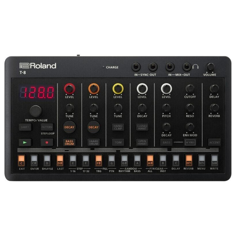 Новинка включает в себя звуки таких легендарных моделей Roland как TR-606, TR-808 и TR-909. Кроме этого, инструмент оснащён функцией Bass Line, позволяющей пользователям генерировать бас со звуком Roland TB-303. Устройство имеет шесть каналов: kick, snare, clap, tom, open/closed hi-hat и басовый канал. Также предлагается секвенсор TR-REC, позволяющий создавать лупы, управлять исполнением и смещением паттернов. Для настройки баса доступны параметры фильтрации, питча и огибающих. Помимо прочего, T-8 обладает отдельной секцией эффектов таких как реверберация, дилей, сайдчейн и овердрайв. Для коммутации предоставлены: MIDI I/O, SYNC I/O, MIX I/O и порт USB-C.