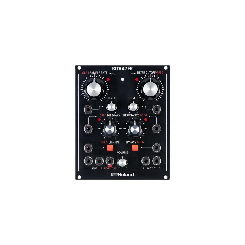 Модульный эффект Roland Bitrazer - это уникальный модульный эффект, понижающий битность и частоту дискретизации с невероятным управлением и гибкостью. Он может использоваться, как настольный прибор или еврорек модуль, и с новыми CV/Gate входами, этот компактный 21 HP юнит имеет широкие возможности в использования от студийной работы до лайвов. Он может быть интересен не только пользователям модульных синтезаторов, но и клавишникам, гитаристам, диджеям и другим музыкантам, желающим сделать свой звук богаче. Бережно созданный в Японии, Bitrazer имеет большие, плавные регуляторы с разрешением в более чем 16 миллионов шагов и с возможностью репрограммирования через компьютер, смартфон или планшет.