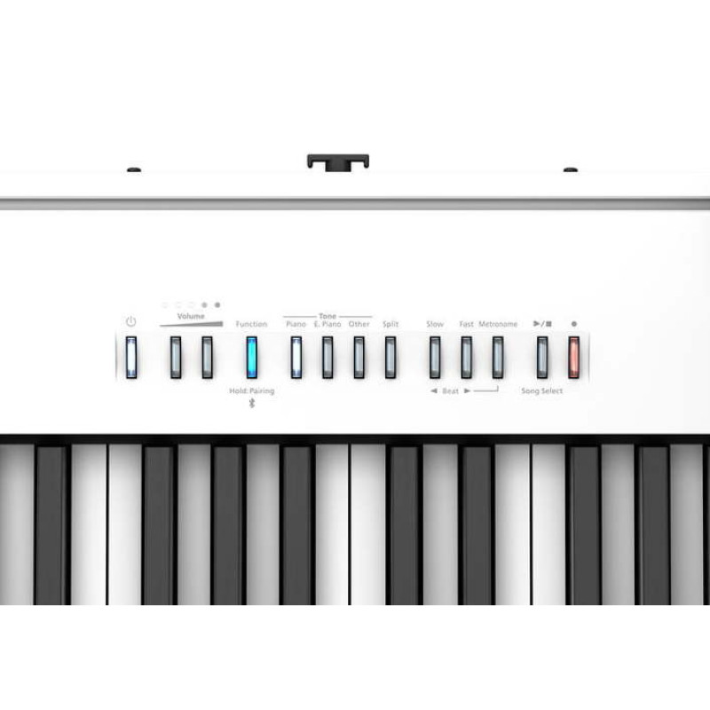 Roland FP-30X-WH – цифровое фортепиано с улучшенной акустической системой и 256-нотной полифонией. Цвет корпуса пианино – белый, в комплект поставки также входят такие аксессуары, как внешний блок питания, пюпитр для нот и педаль сустейна. Фортепиано FP-30X WH оборудовано звуковым процессором SuperNATURAL Piano и клавиатурой с 88 полноразмерными клавишами, сделанными из дерева с имитацией под слоновую кость. Инструмент одинаково хорошо подойдет для домашних занятий как профессиональным музыкантам, так и новичкам. Небольшие размеры и малый вес модели упрощают ее перевозку и установку. Для занятий и игры под музыкальное сопровождение с внешнего устройства (планшета, смартфона или ноутбука) предусмотрен модуль Bluetooth. Чтобы подключиться к таким музыкальным приложениям, как GarageBand или Piano Every Day, можно воспользоваться функцией Bluetooth MIDI. Для обмена файлами с ПК в конструкции предусмотрен порт USB, а для занятий поздним вечером – 2 выхода на наушники с разъемами 6.3 и 3.5 мм. Акустическая система пианино FP-30X WH состоит из двух 12-сантиметровыми динамиков, мощность каждого из которых равняется 11 Вт. Вместе эти динамики создают объемное и яркое звучание с полным заполнением рабочей площадки. Среди прочих функций — транспонирование, встроенный метроном, библиотека с 30 предустановленными произведениями, разделение клавиатуры.