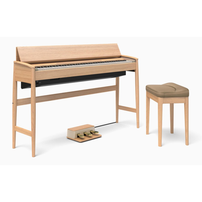 Фортепиано Roland KF-10 сочетает передовые цифровые технологии с мастеровыми традициями. Этот инструмент был создан совместно компанией Roland и ведущей японской компанией-производителем деревянной мебели Karimoku. Это утонченное цифровое пианино достигает совершенной гармонии формы и назначения: мощный инструмент, который станет элегантным дополнением вашего интерьера. Его название KIYOLA переводится как «элегантность и красота». Это фортепиано с уникальным визуальным образом и корпусом ручной работы сделано из натурального массива дерева. С другой стороны, инновационные цифровые технологии Roland, включающие моделирование фортепиано SuperNATURAL и клавиатуру PHA-50, дают музыканту наибольшую эмоциональную отдачу фортепиано при игре. Возможность связаться с любыми музыкальными приложениями по беспроводной связи Bluetooth® дополнит возможности инструмента, а встроенная мощная акустическая система заполнит ваш дом объемным звучанием. Корпус может быть сделан из ореха или чистого дуба. Тройная педаль и рояльная банкетка включены в комплект.