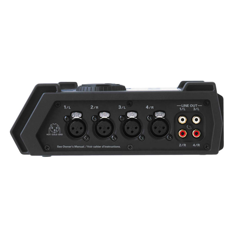 4 комбинированных разъёма XLR/Phone имеют выключаемое фантомное питание и предоставляют Вам возможность выбора МОНО, СТЕРЕО, СТЕРЕОх2 или 4-канальной записи. Цифровой вход/выход также обеспечивает возможность четырёхканальной записи, предоставляя вам исключительную манёвренность.