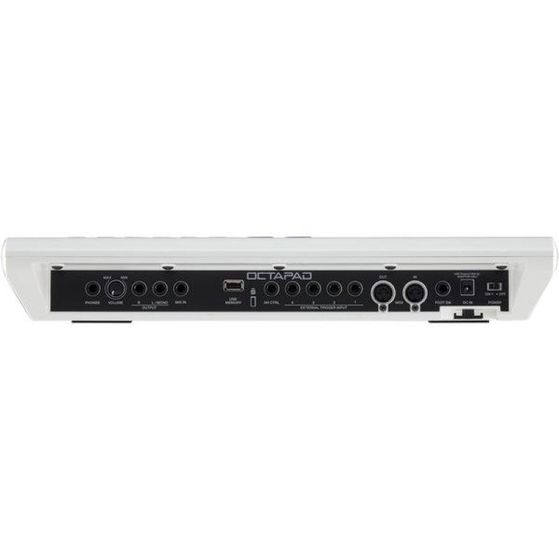 Если 8 пэдов покажется мало, имеется возможность подключения собственных. Для этого есть 4 триггерных входа на разъемах 1/4'' Jack TRS и вход для педали хай-хэта на разъеме 1/4'' Jack TS. К ним можно подключать опциональные пэды серий PD, PDX, BT, KD и KT, тарелки серии CY, хай-хэт VH-11/10 с педалью серии FD. Также присутствует вход для футсвича на разъеме 1/4'' Jack TRS. Подойдут модели ножных переключателей серии FS (кроме Latch-type), которые также в комплект не входят и приобретаются отдельно.