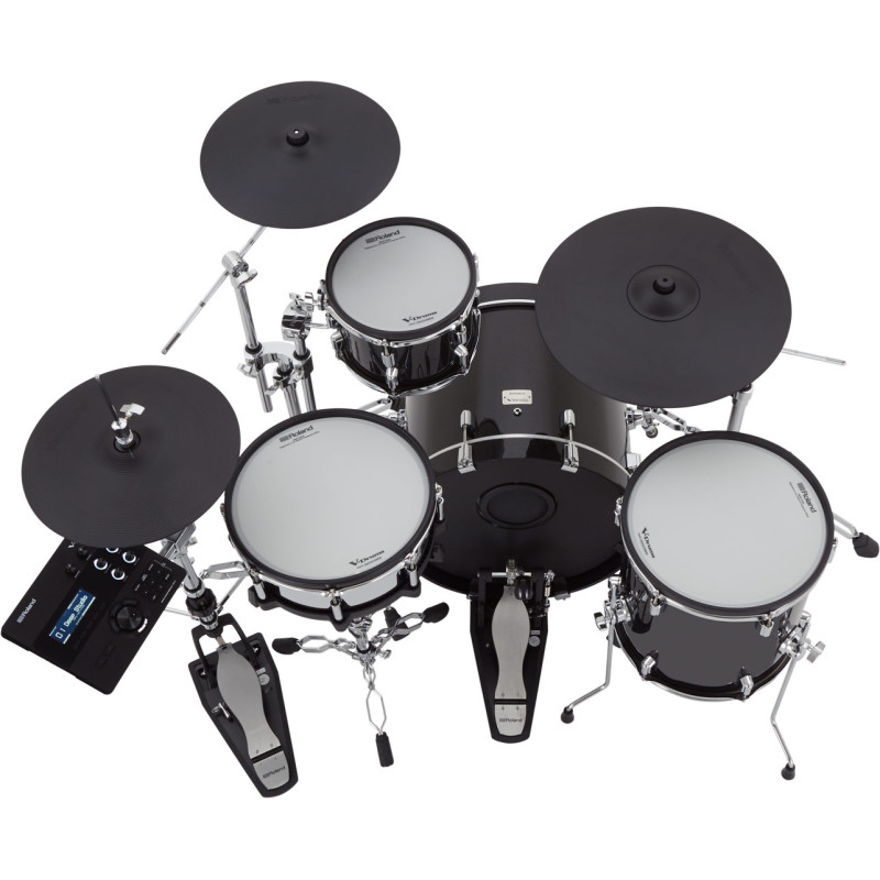 Благодаря впечатляющему внешнему виду, знакомой компоновке и вдохновляющей отдаче высококлассного акустического комплекта, VAD504 позволяет любому барабанщику мгновенно почувствовать себя как дома. Есть 14-дюймовый малый барабан из нержавеющей стали, 10-дюймовый рэковый том, 14-дюймовый напольный том и 20-дюймовая бас-бочка, выполненные из полноразмерных деревянных корпусов, добавляющих аутентичности и обеспечивающих подлинное акустическое ощущение под палочками и колотушкой. Полный набор тарелок включает 14-дюймовый V-Hi-Hat, 14-дюймовый крэш (с тонким профилем и текстурированной отделкой) и 18-дюймовый райд для превосходной игры и естественного внешнего вида на сцене.