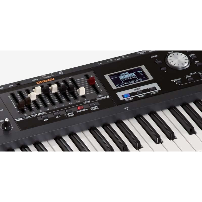 The 61-note keyboard has an extremely fast response, perfect for essential organ techniques such as trill, sputter, glissando, and percussive hits. Rotary speaker and amp simulators reproduce the characteristics of vintage organ speaker cabinets and overdriven tube circuits with astounding realism, while a new “Twin Rotary” option delivers a deep, aggressive effect never before heard. Технология SuperNATURAL позволяет точно смоделировать электроорган на основе тоновых колес, а 9 регистровых движков дают возможность аутентично управлять звуком во время игры. Также добавлена недавно разработанная модель транзисторного органа, как в 60е годы.