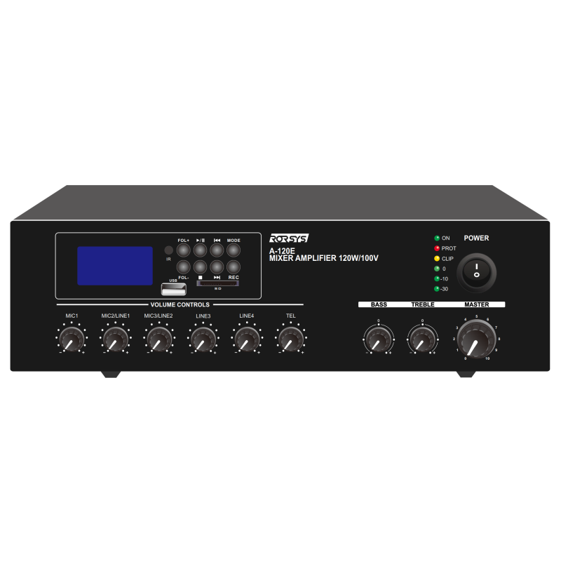 Микшер-усилитель с медиаплеером A-120E является отличным решением от бренда RORSYS при организации системы фонового/сопроводительного музыкального вещания и/или голосового оповещения на объектах небольших и средних площадей.