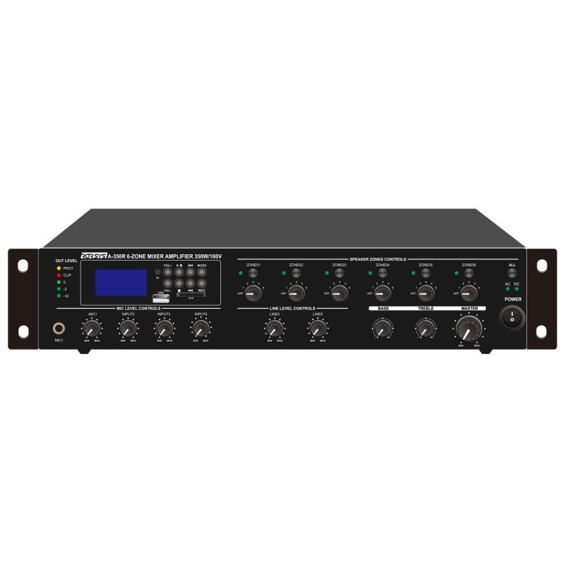 Зональный микшер-усилитель с медиаплеером A-350R является отличным решением от бренда RORSYS при организации на объектах разветвлённой системы фонового/сопроводительного музыкального вещания и/или голосового оповещения.