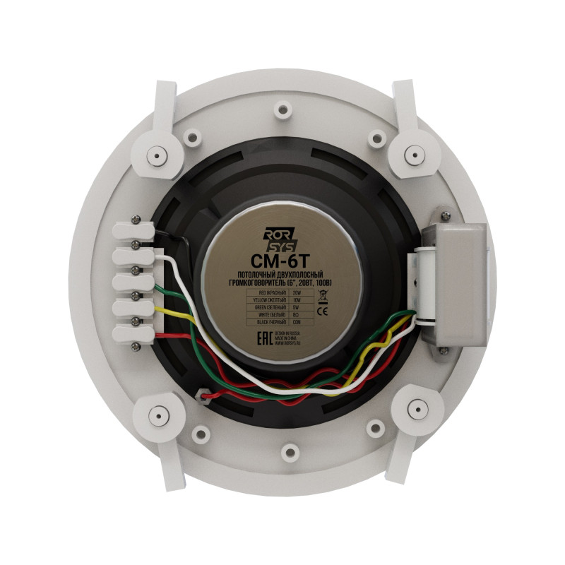 Потолочный громкоговоритель CM-6T используется в составе систем музыкального вещания и голосового оповещения.