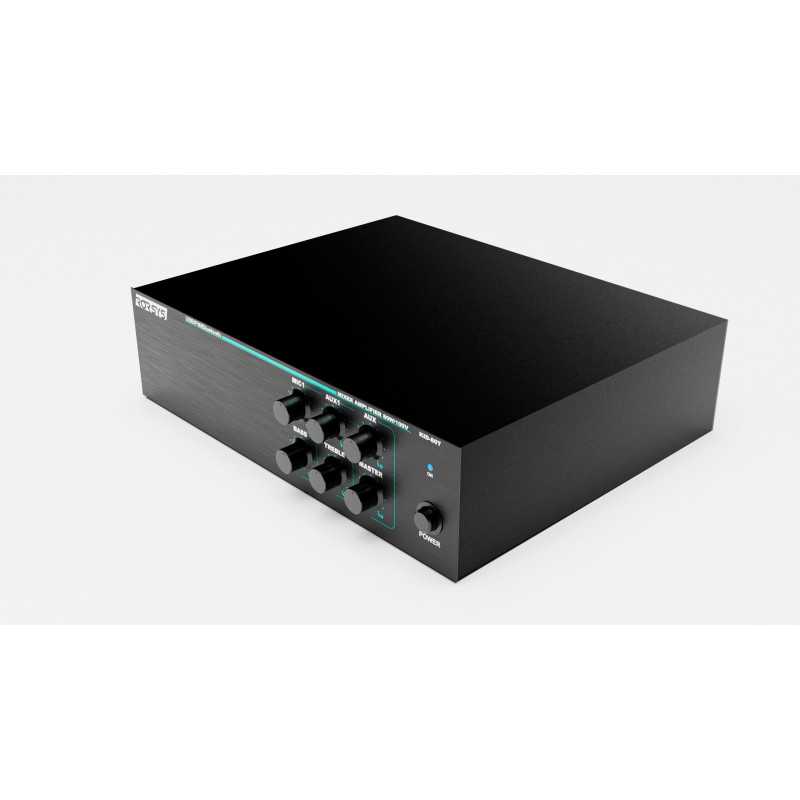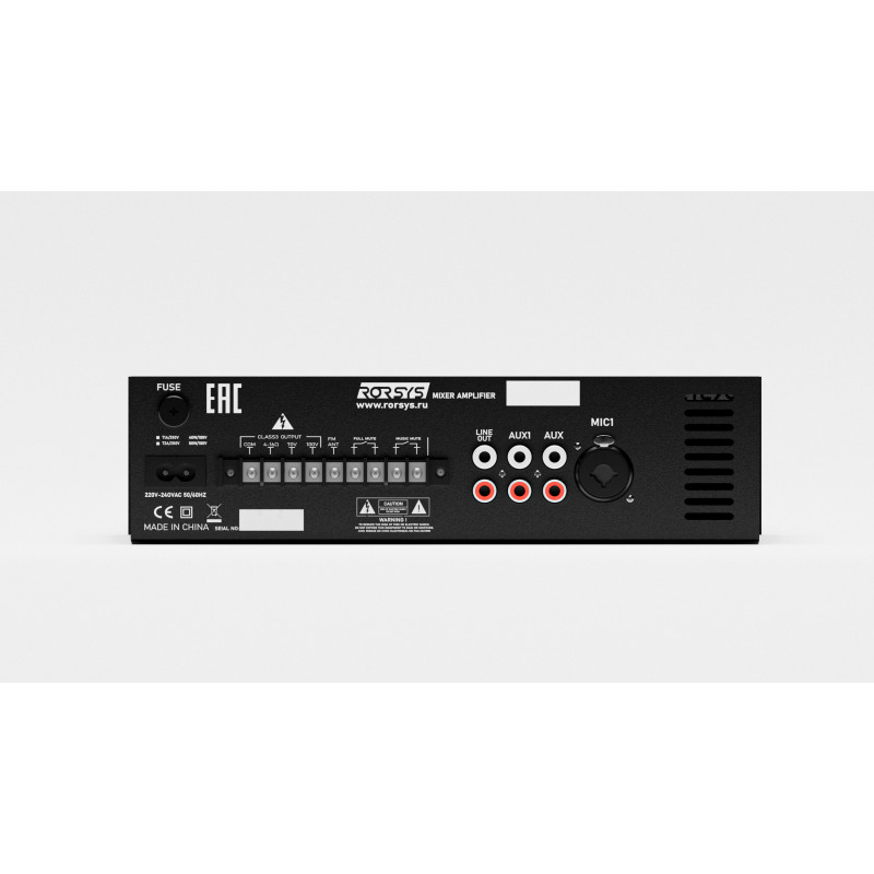 Один канал, мощность на выходе составляет 80 Вт. Возможно подключение как трансляционных (напряжение в линии 70/100В), так и низкоомных (импеданс линии 4-16 Ом) акустических систем. Важно отметить, что одновременно можно применять акустику только одного типа. Диапазон воспроизводимых частот 80 Гц - 20 кГц.