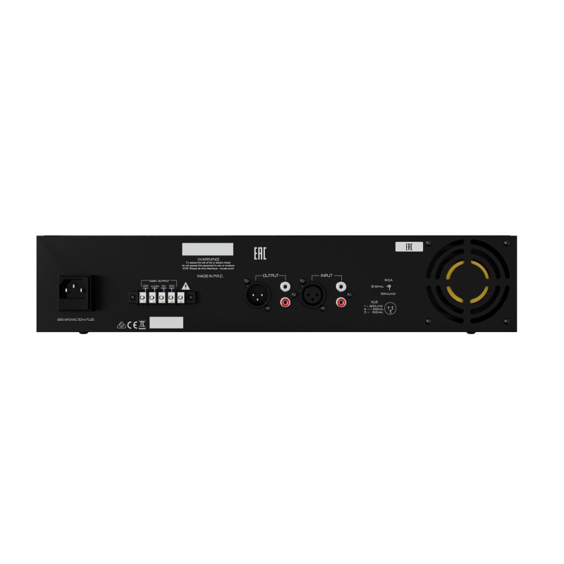 Универсальный усилитель поддерживает работу с акустическими системами различного типа: трансляционными, с рабочим напряжением 70 или 100В; низкоомными, с импедансом от 4-х до 16-и Ом. Частотный диапазон 80 Гц - 20 кГц, соотношение сигнал/шум >75 дБ, гармонические искажения < 0.5% (на частоте 1 кГц, при подключении 100В, по уровню -3 дБ). Аудивыходы на громкоговорители реализованы зажимными клеммами под винт (1 блок).