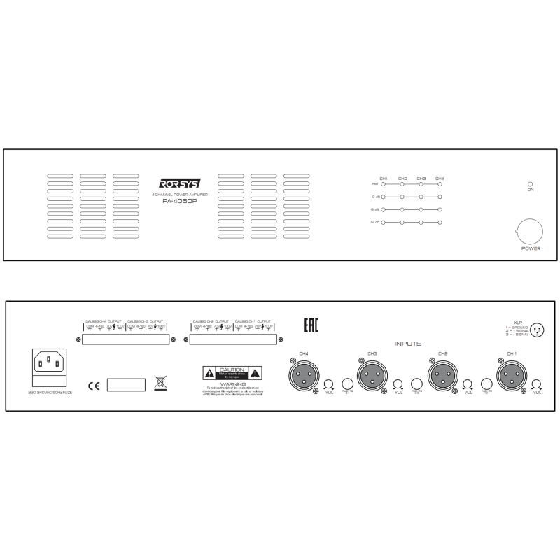 Трансляционный усилитель мощности PA-4120P обеспечивает высококачественное усиление акустических сигналов по четырем (4) независимым каналам для последующей трансляции в четырех зонах.