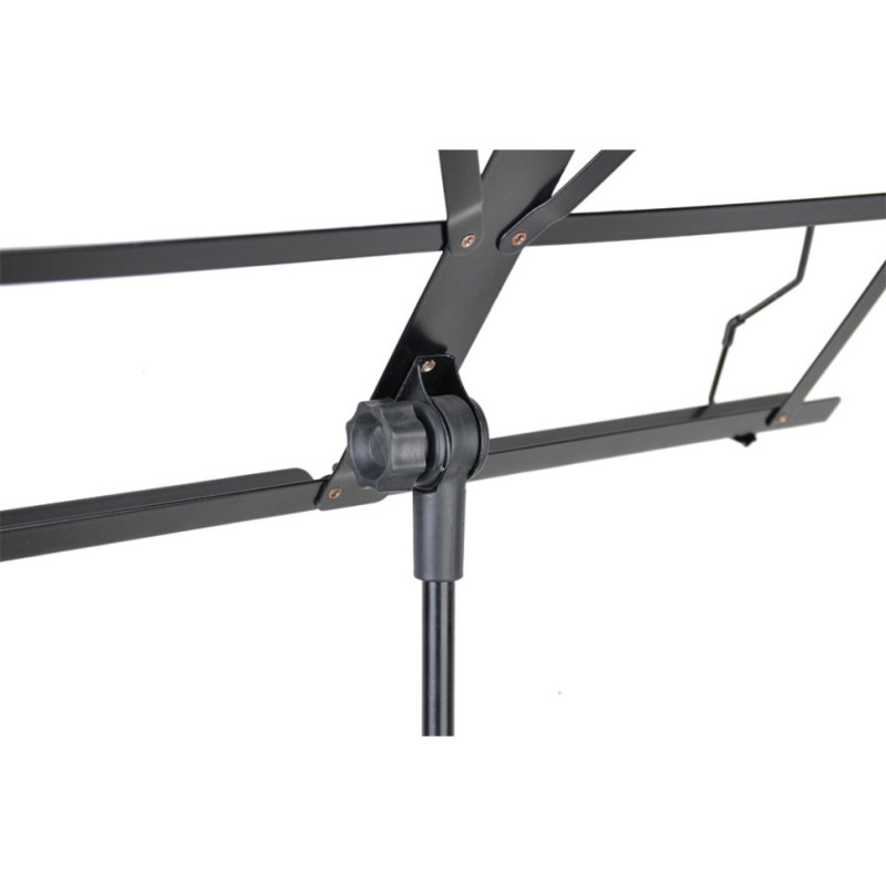 Его размеры составляют 505 х 290 мм, а телескопическая штанга позволяет регулировать высоту от 64 до 127 см. Максимальная нагрузка составляет 2 кг, а цвет - черный. В комплект входит нейлоновый чехол для удобного хранения и транспортировки пюпитра.