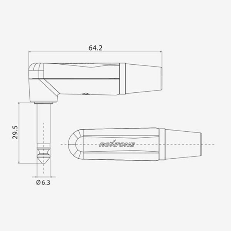 - Модель:Разъем, 6,3mm mono Male Jack(угловой)