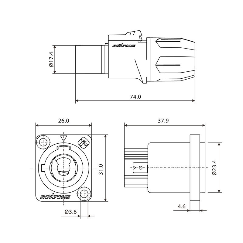 - Модель:Разъем кабельный типа powercon (Out), 3-х контактный