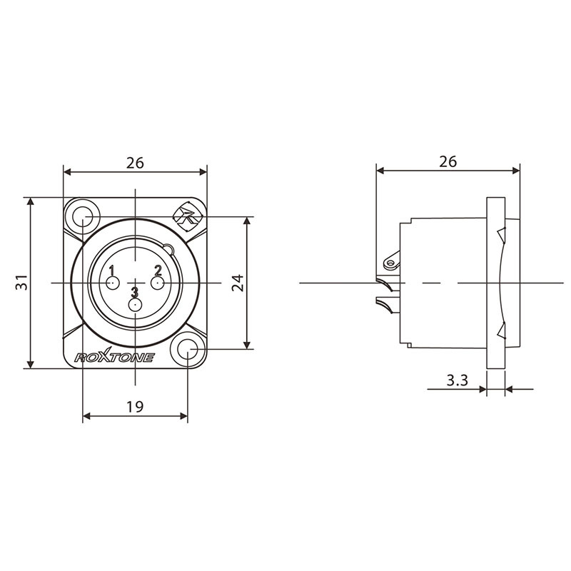 - Модель:Разъем cannon (XLR) панельный, IP65, папа 3-х контактный
