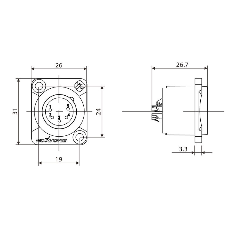 ROXTONE RX5MDWP-BG - Разъем cannon (XLR) панельный папа 5-ти контактный пыле- и влаго-защищенный для тяжелых условий эксплуатации со степенью защиты IP66.